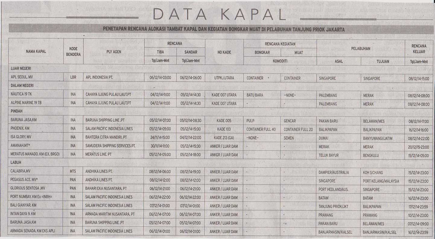 Penetapan rencana alokasi tambat kapal dan kegiatan bongkar muat di pelabuhan tanjung priok jakarta activate javascript